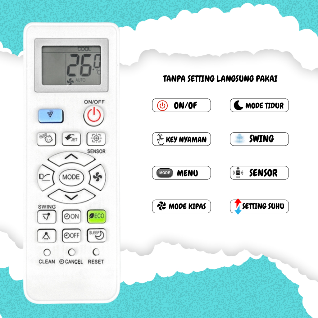 Remot Remote Multi Universal AC Sharp type K-8014 Tanpa Setting