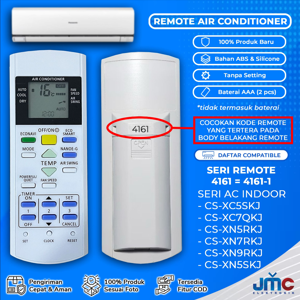 Varian Remote AC JMC Pengganti Remot AC PANASONIC 4461 4185 A75C3865 3623-1 A75C3623 4161 A75C3269 A75C4157 4157-1 A75C3