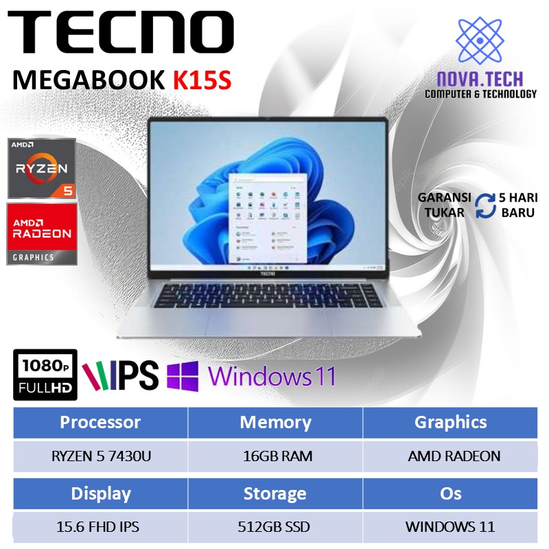 Tecno Megabook T1 Ryzen 5 7430 ram 16gb 512gb ssd w11 home