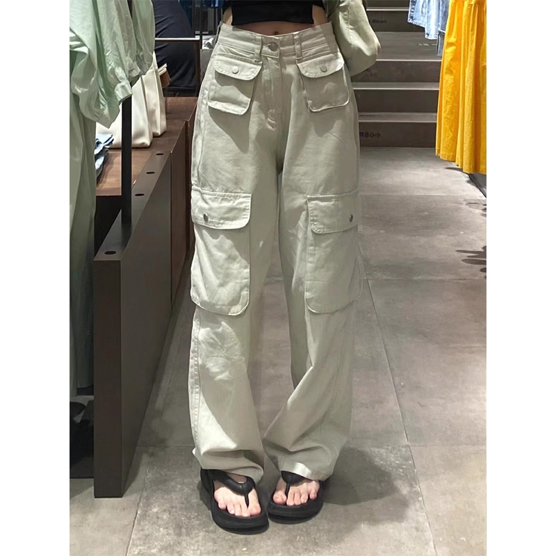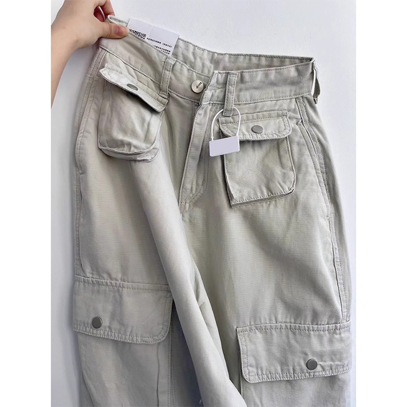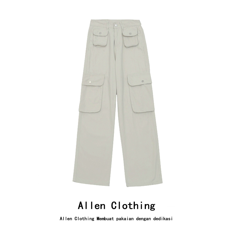 Allen Clothing Celana Jeans Kerja Pinggang Tinggi Aprikot Gaya Korea Terbaru Celana Kasual Lurus Longgar Asli Wanita