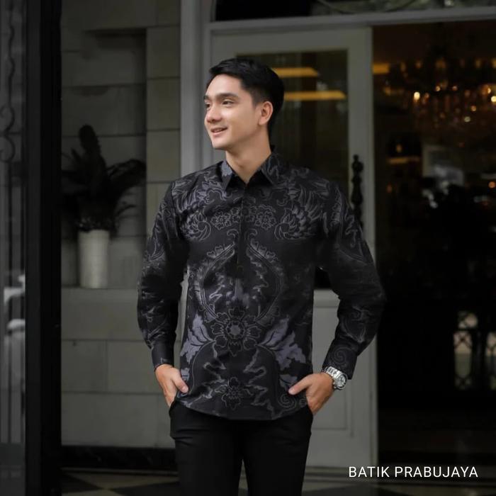 MAHKOTA ABU BAJU BATIK PRIA LENGAN PANJANG TERBARU MODERN MEWAH PREMIUM ANAK MUDA FORMAL KANTOR FULL FURING KATUN - M