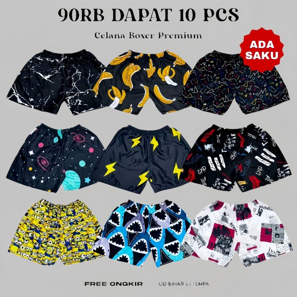 Celana pendek pria wanita dewasa boxer distro santai 100 dapet 10 pcs