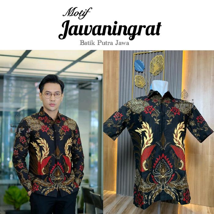 KEMEJA BATIK SLIMFIT MOTIF JAWANINGRAT, BAJU BATIK LENGAN PANJANG, BAHAN KATUN PREMIUM, ATASAN HEM PRIA COWOK DEWASA, KANCING TERTUTUP, SERAGAM PESTA KONDANGAN NYAMAN ,BISA - S, LENGAN PENDEK