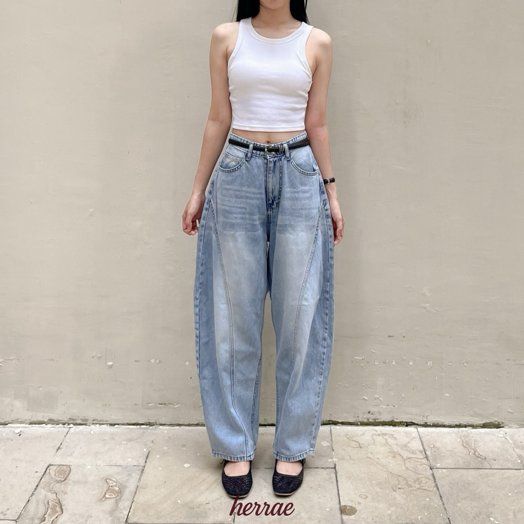 HERRAE - BISOU JEANS | Barrel Jeans Denim Wanita Highwaist Baggy Pants