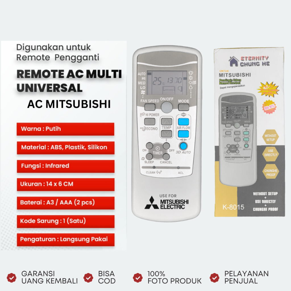 REMOTE AC MITSUBISHI RKW502A200A SRK25QA SPLIT INVERTER 1/2 - 1 PK