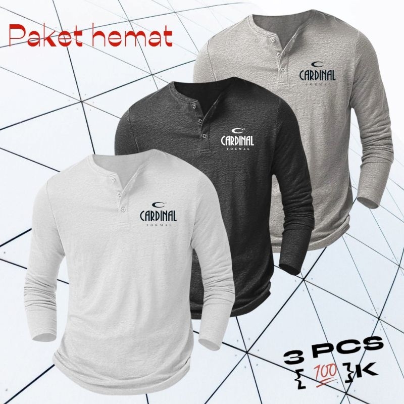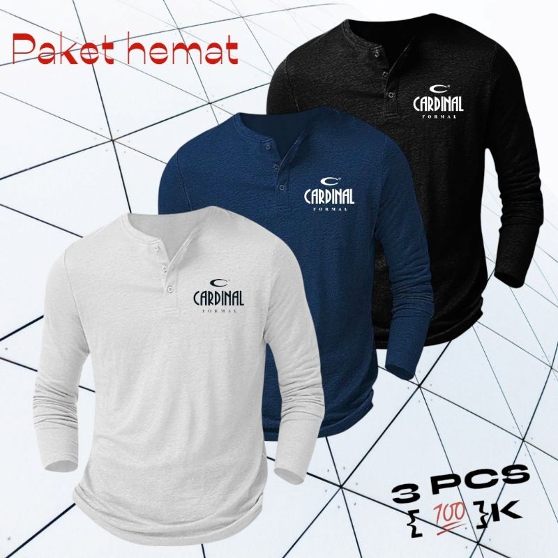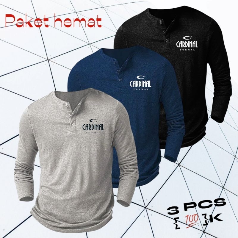 Paket Hemat 3 Pcs Kaos Kancing Pria Lengan Panjang /Kaos LOGO CR /kaos Distro /Kaos
