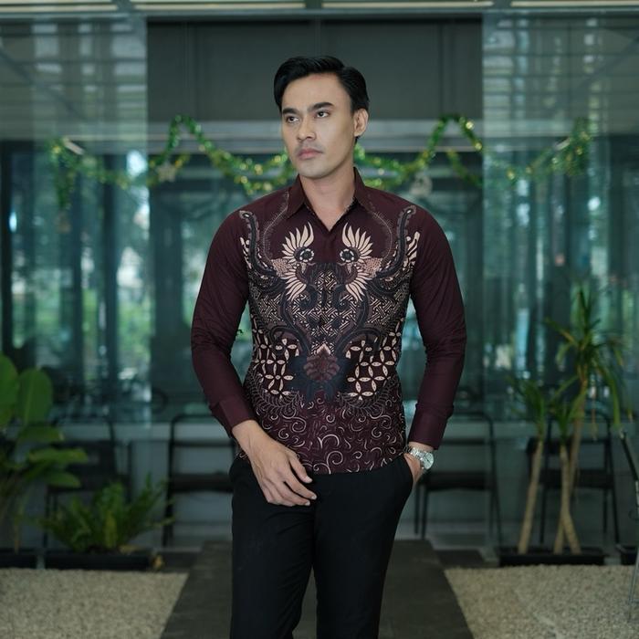 BATIK NINGRATAN MOTIF PRABUWIRA BURGUNDY MAROON KEMEJA BATIK PRIA PREMIUM LENGAN PANJANG SLIMFIT LAPIS FURING KATUN PRIMA HALUS DAN ADEM ANAK MUDA KEREN - S