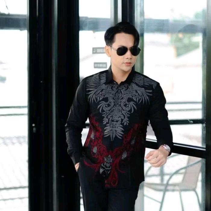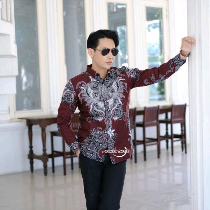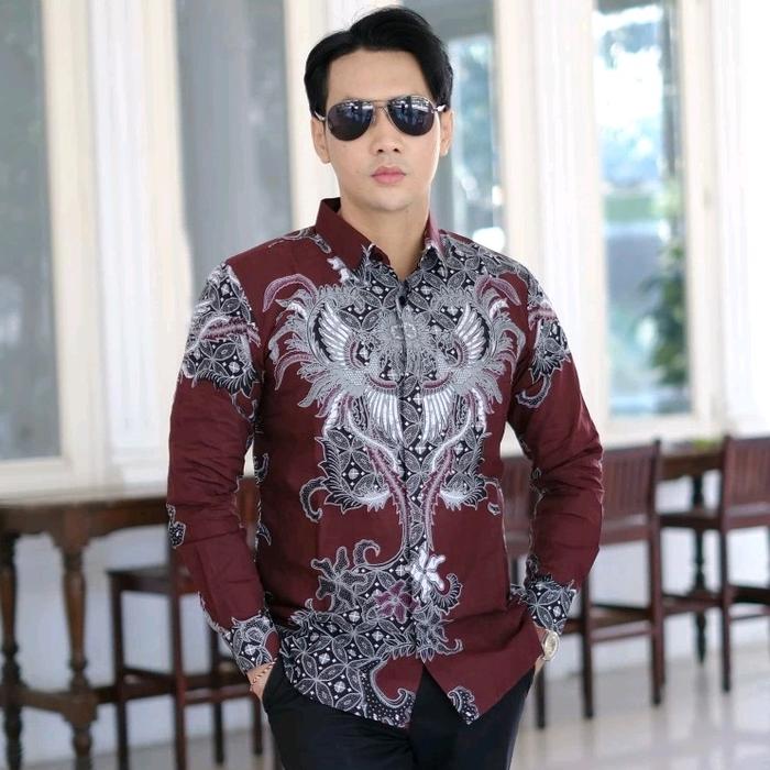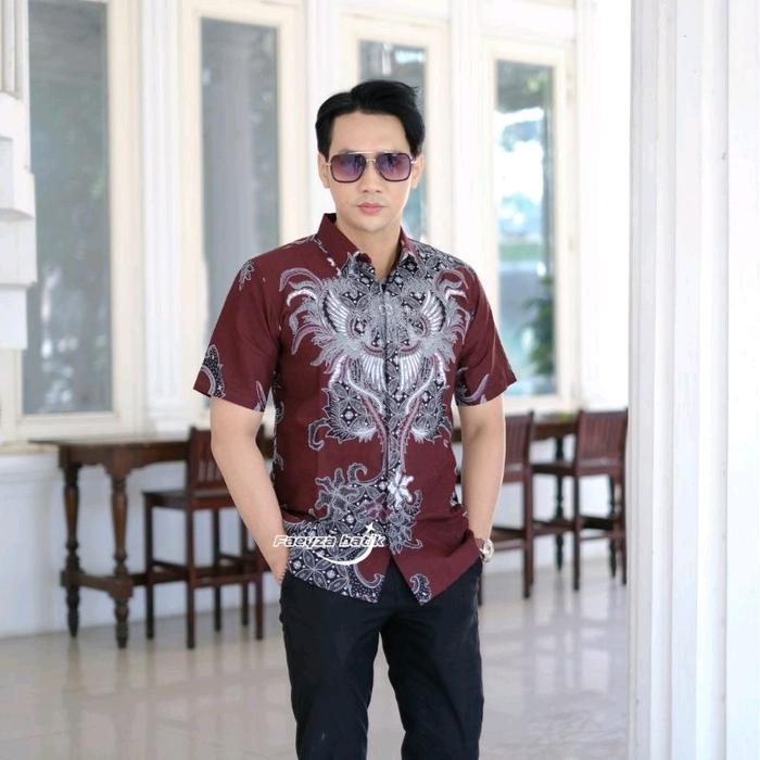 BATIK PRIA DEWASA - KEMEJA WARNA BURGUNDY -ATASAN MOTIF TULIS BURGUNDI CASUAL PANJANG PENDEK BAJU KATUN LEMBUT NYAMAN KEREN MERAH KAIN - TULIS BURGUNDY PJG, M
