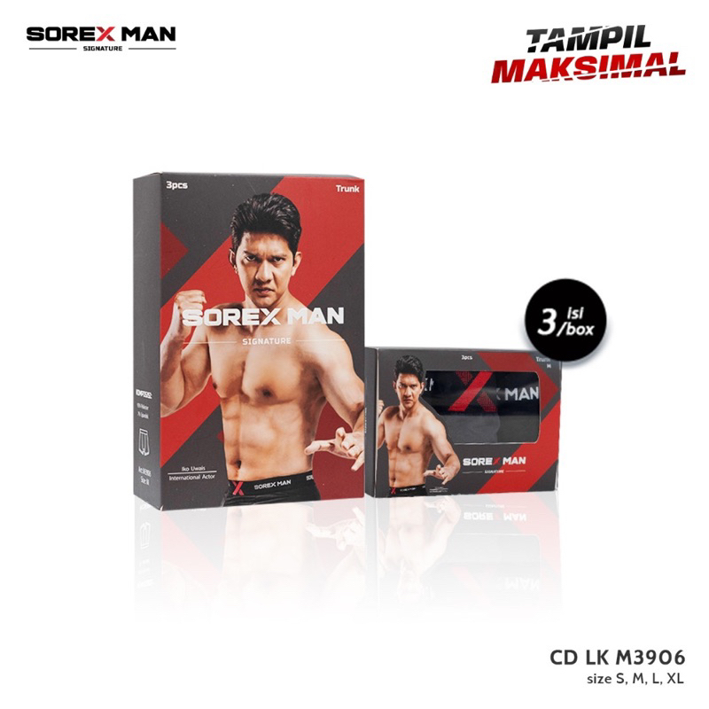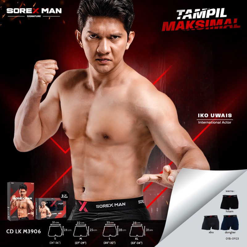 isi 3pcs Boxer Pria Sorex Man Spesial Edition(Iko Uwais)CD Boxer laki Adem Signature Trunk Sport M3906/3904