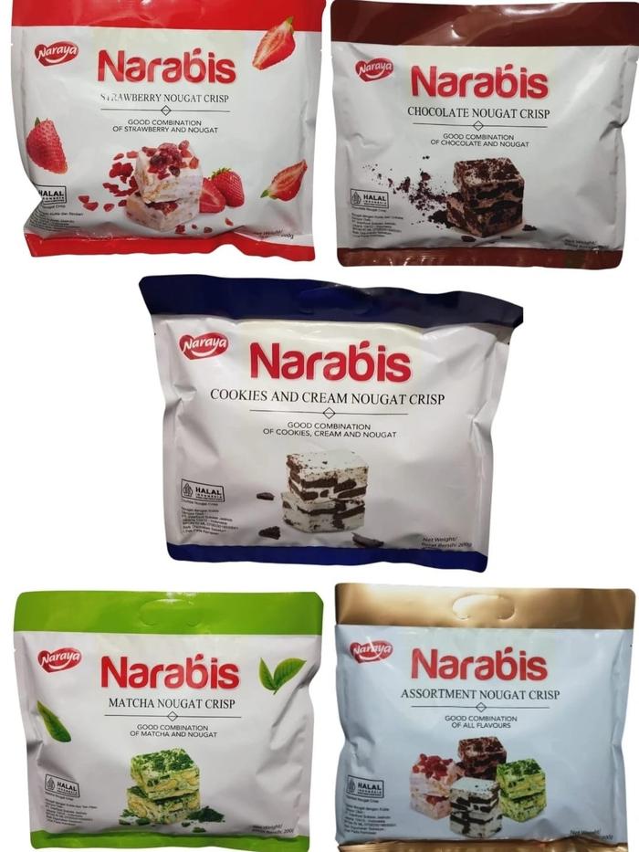 NARAYA NARABIS STRAWBERRY MATCHA CHOCOLATE COOKIES CREAM ASSORTMENT NOUGAT CRISP 200G - CHOCOLATE