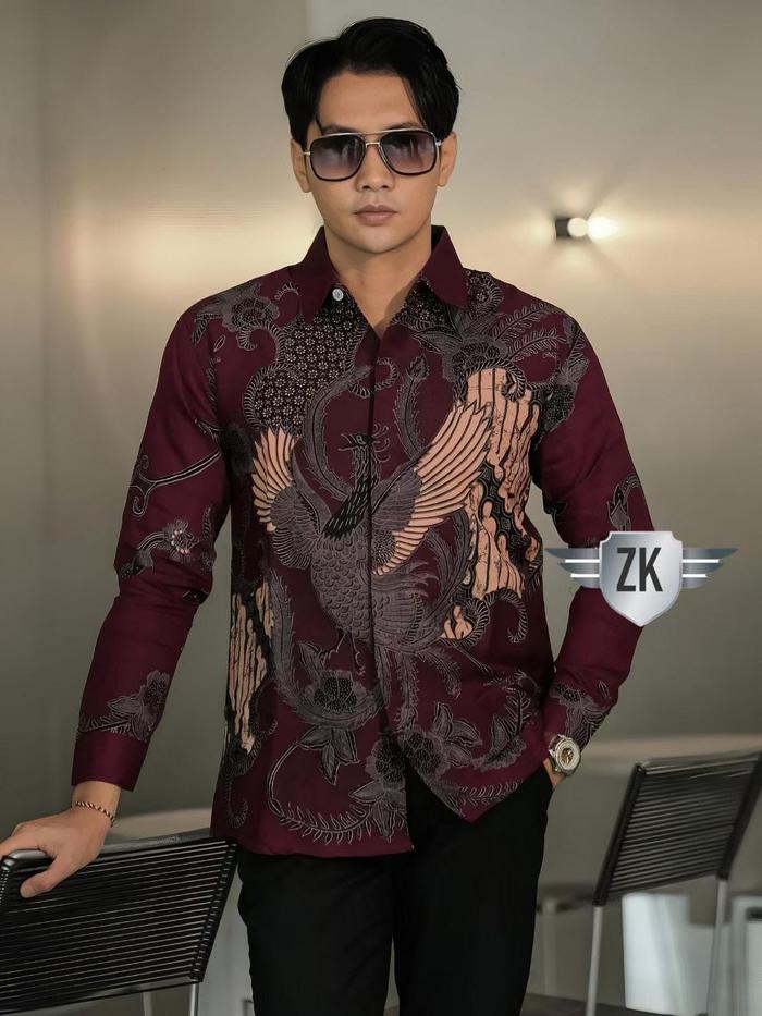 KEMEJA BATIK PRIA BURGUNDY PANEMBAHAN FASHION LENGAN PANJANG SLIM FIT REGULLER SIZE M-XXL KATUN BAJU KANTOR FORMAL KEREN MOTIF TERBARU NYAMAN PEKALONGAN - SENTANI, M