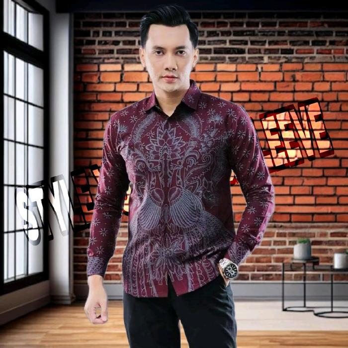 BATIK JUMBO BATIK PRIA LENGAN PANJANG SIZE M L XL XXL 3XL 4XL 5XL KATUN NYAMAN BIRU - ARJUNA, M
