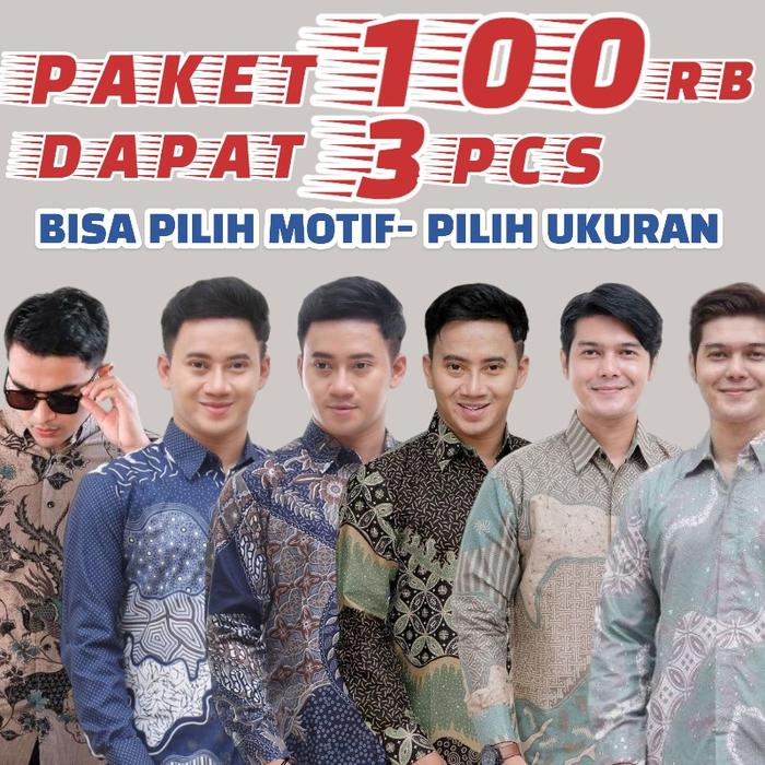 3 PCS 100 RIBU BAJU BATIK PRIA LENGAN PANJANG BAHAN KATUN HALUS FORMAL MOTIF NYAMAN SERAGAM KANTOR - PILIH MOTIF(WAJIB TULIS DIPESAN OPSIONAL), M