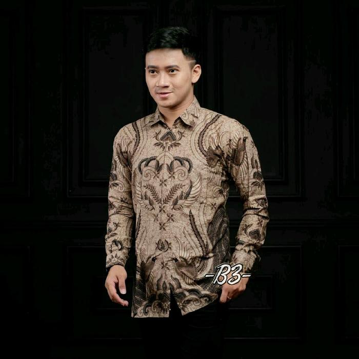 KEMEJA BATIK PRIA KATUN LENGAN PANJANG WARNA COKLAT UKURAN M, L, XL, XXL, 3XL BAJU FORMAL MUDA MOTIF SERAGAM KANTOR PEKALONGAN - MOTIF1, S