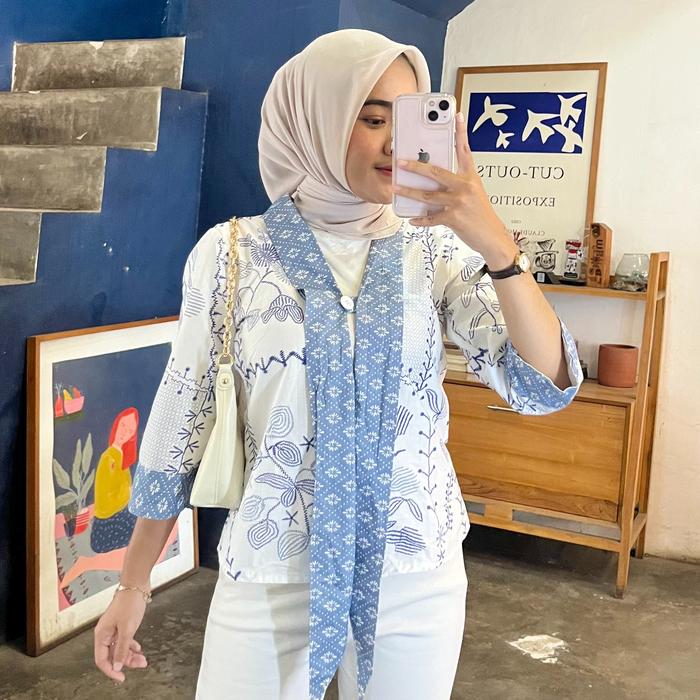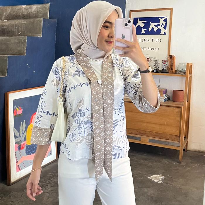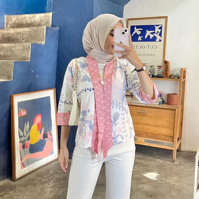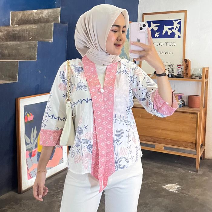 BLOUSE OUTER BATIK KANCING 1 UNTUK KONDANGAN DAN KERJA BAJU KATUN PENDEK PANJANG CASUAL T0P CEWEK - PINK, M