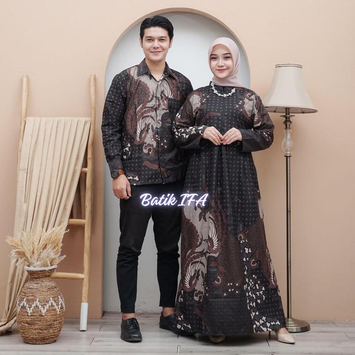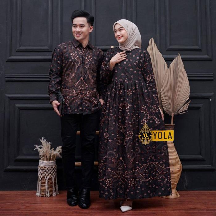 BAJU BATIK COUPLE MODERN - SARIMBIT BATIK KONDANGAN KEKINIAN - COUPLE GAMIS BATIK DAN KEMEJA POLYESTER - GAMBAR 1, KEMEJA M GAMIS STANDAR