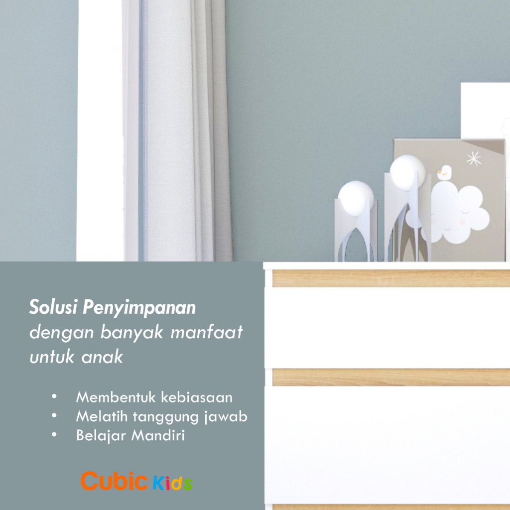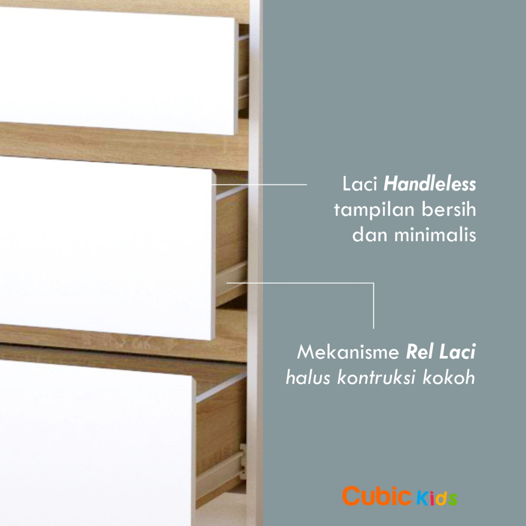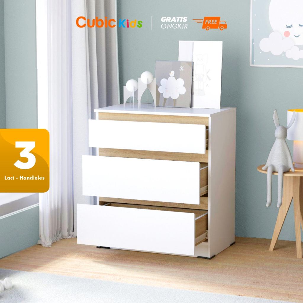 lemari laci anak 3 susun cubic almari baju set kuat dan kokoh minimalis elegan bahan premium murah berkualitas