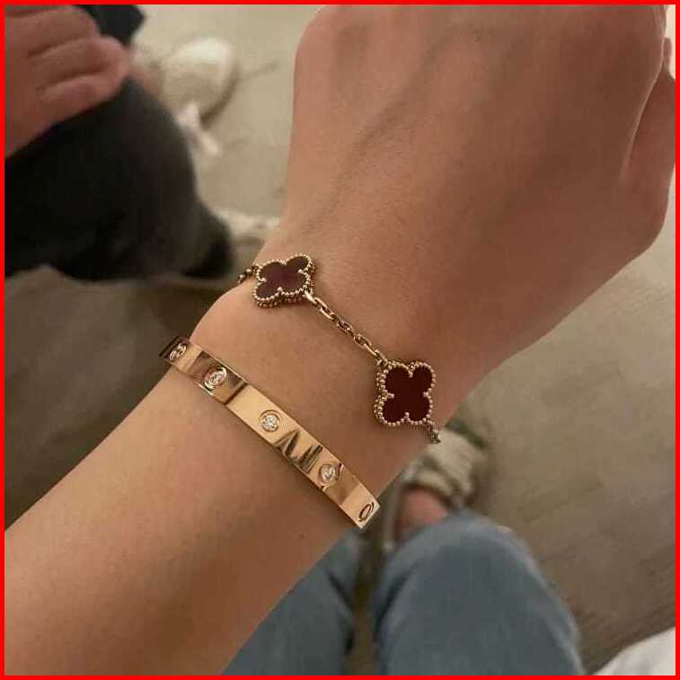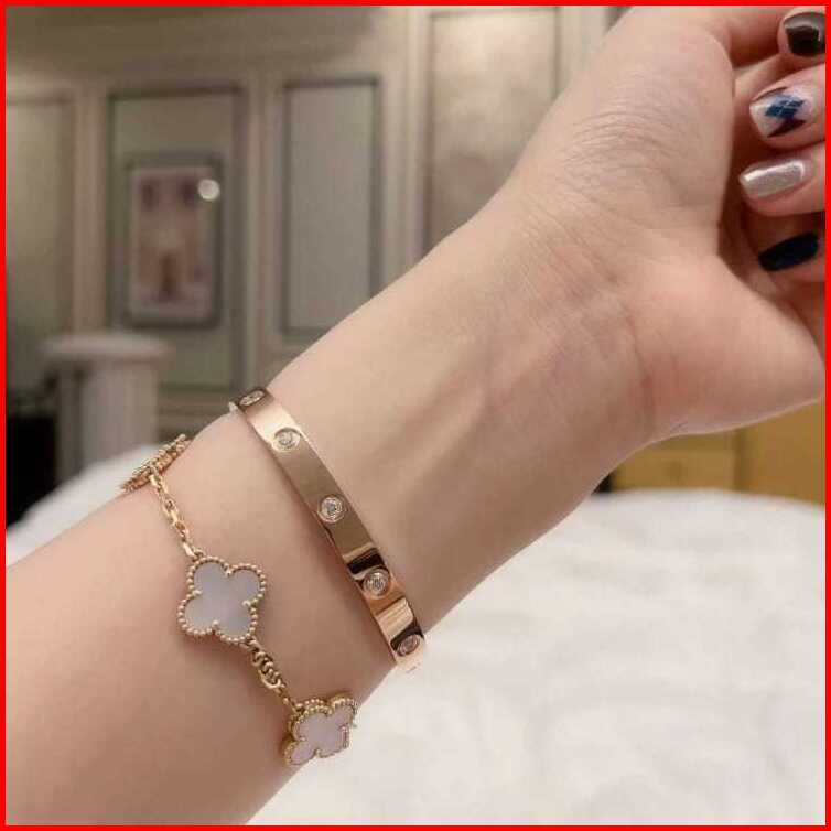 Set Gelang Slim Bunga Kloper Titanium Wanita Titanium Anti Karat
