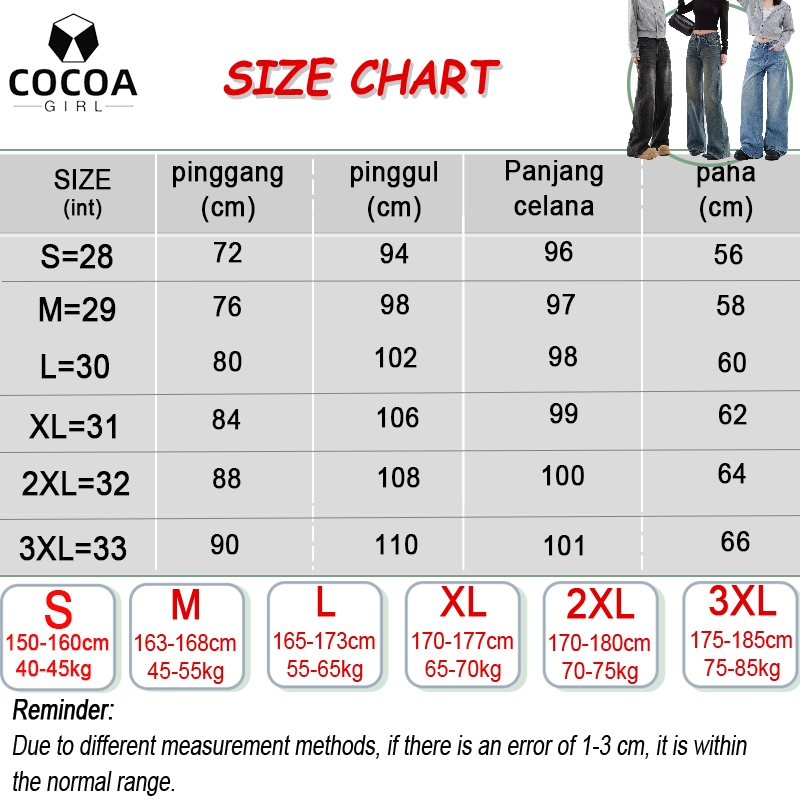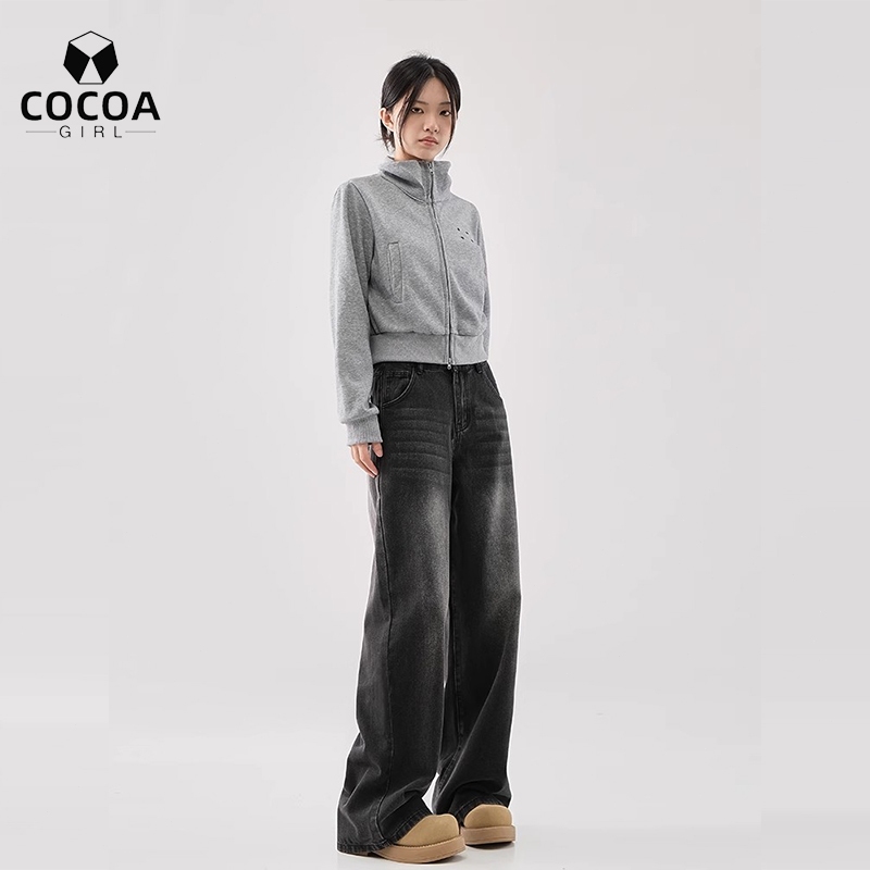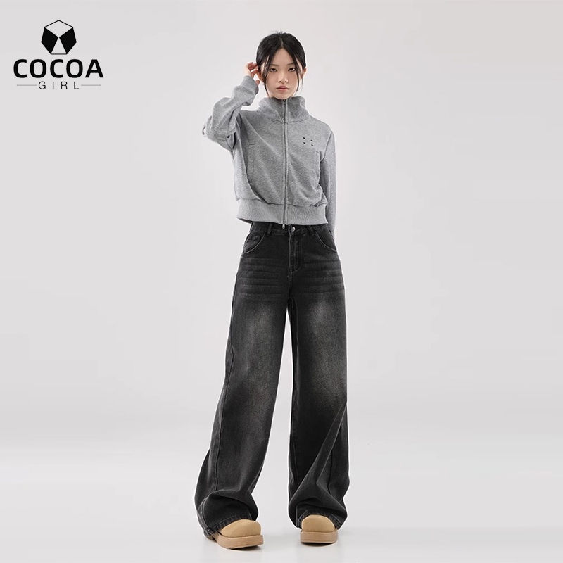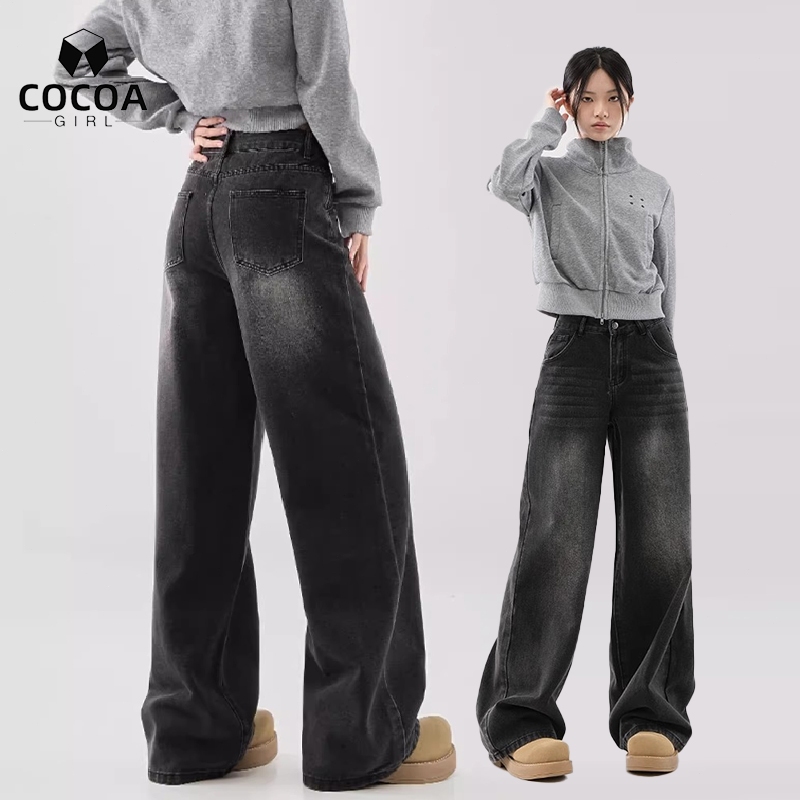 Cocoa Girl Celana Jeans Wanita Hitam Celana panjang wanita korea style celana jeans wanita murah celana baggy pants wanita korean new women's retro loose High Waist Wide Leg jeans