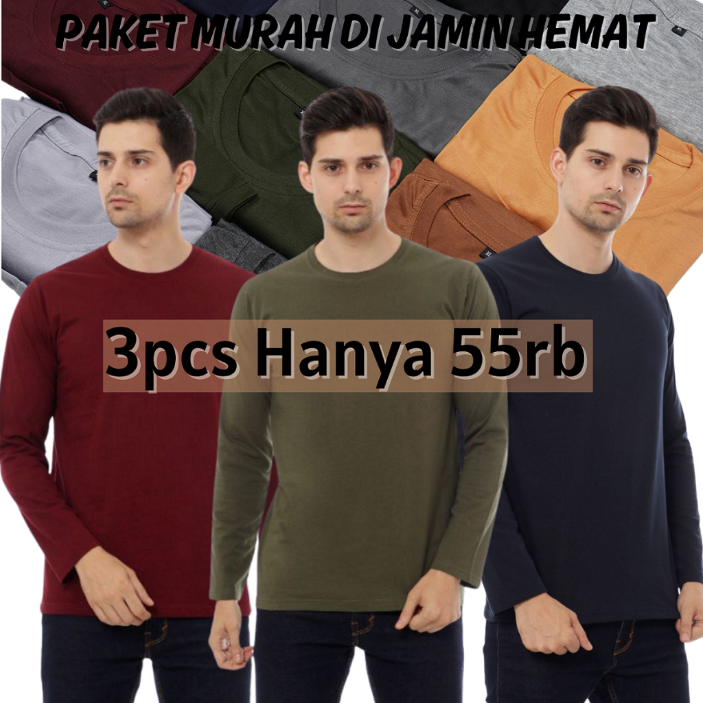 Kaos Polos Lengan Panjang Pria Wanita PE 30s Premium Paket Murah 3PCS