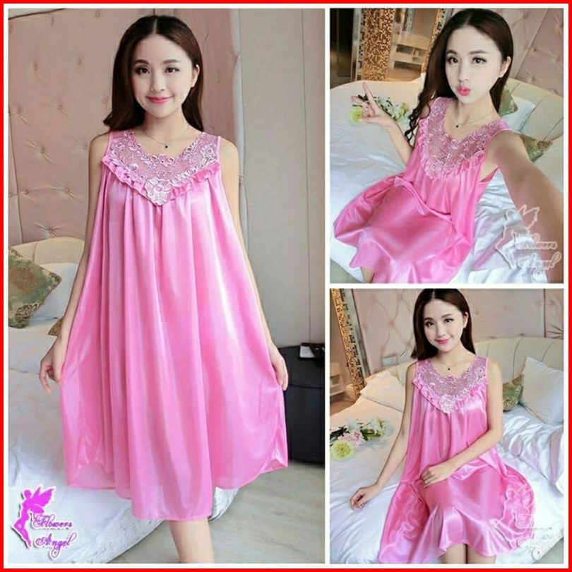 Baju Tidur Wanita Dress Lingerie Sexi Daster Happy Bahan Satin Size Xxl Jumbo