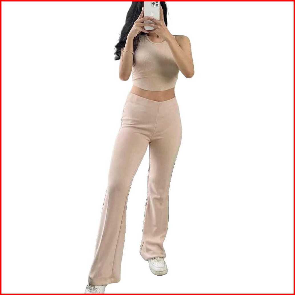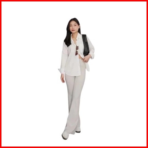 Aqquattaa Celana Fit And Flared Pants Cutbray Scuba Pinggang Highwaist Bahan Stretch Melar Warna Ivory