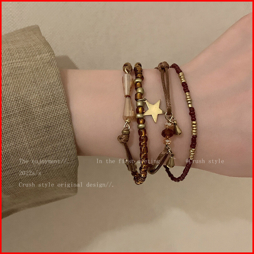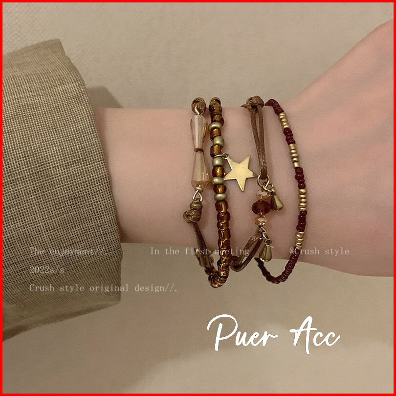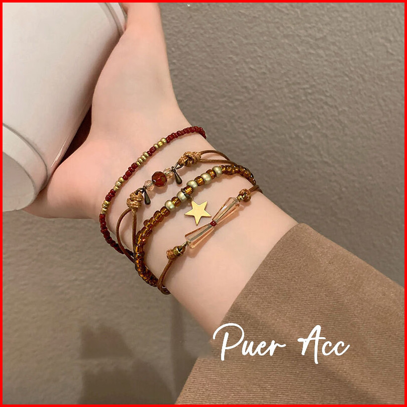 Puer Acc Gelang Retro Gaya Etnis Manik -manik Wanita Bertumpuk Gelang J656