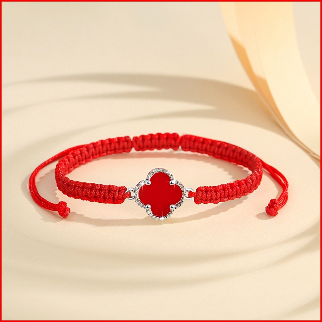 Lanme Jewelry Gelang Kepang Empat Daun Semanggi Stainless Steel Anti Luntur Aksesoris Fashion Wanita Dewasa Gelang Serut