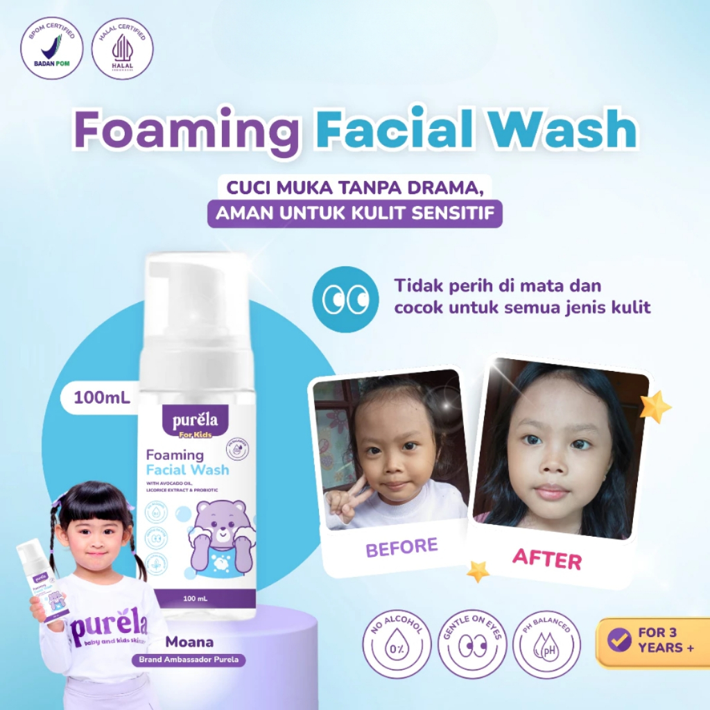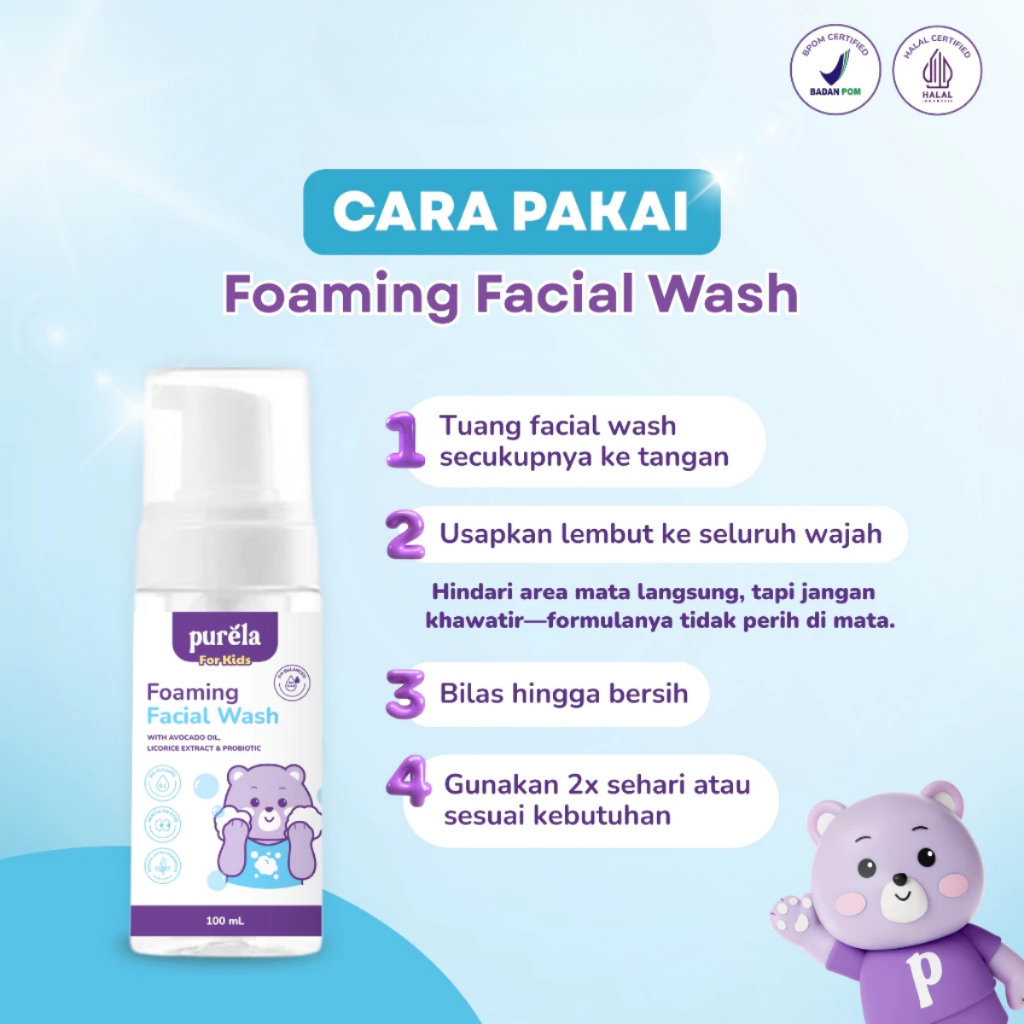Purela Foaming Facial Wash – Pembersih Wajah Bayi dengan Avocado Oil, Licorice & Probiotics