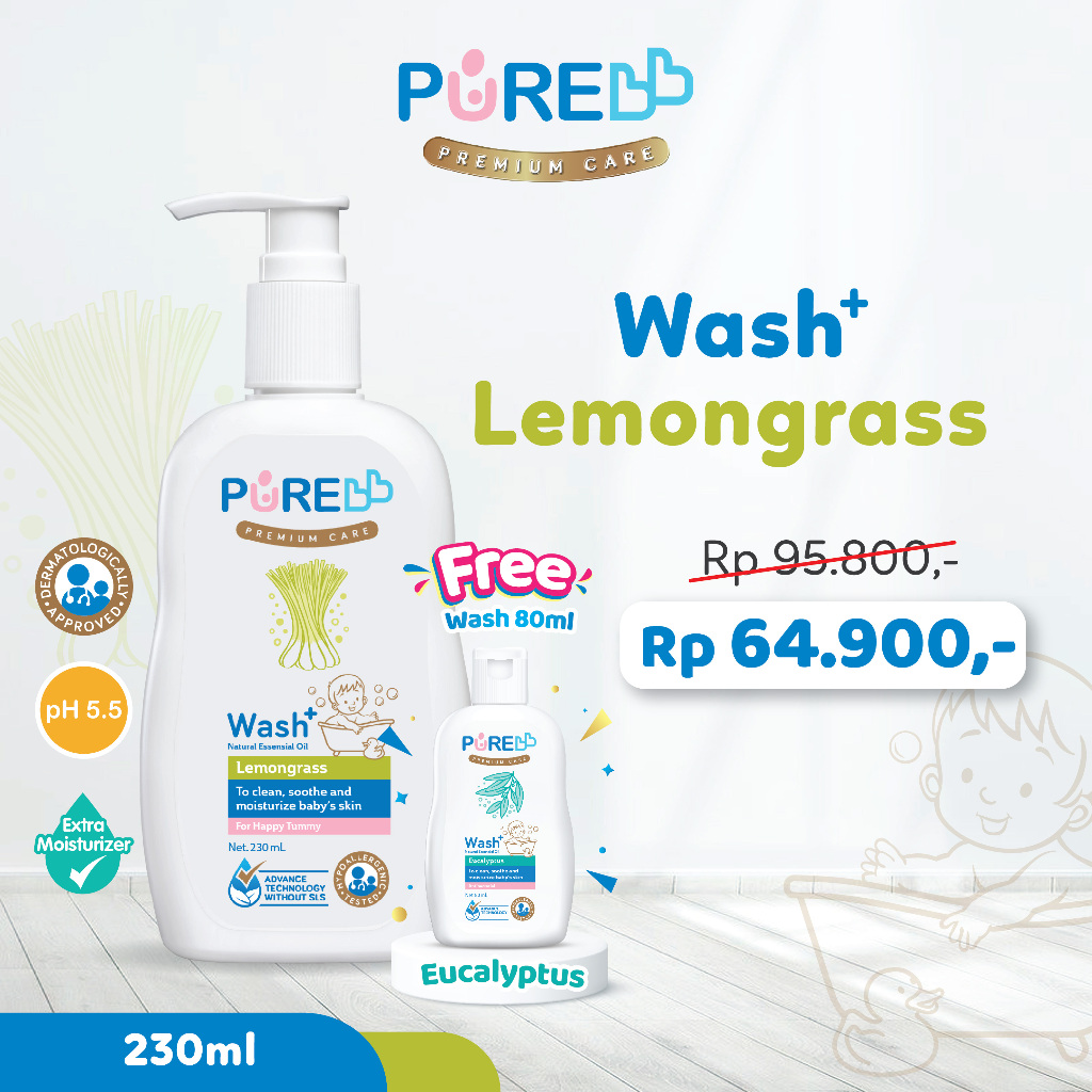 BUY 1 GET 1 - PUREBB WASH LEMONGRASS 230ML + WASH EUCALYPTUS 80ML (EXP 05/2026)