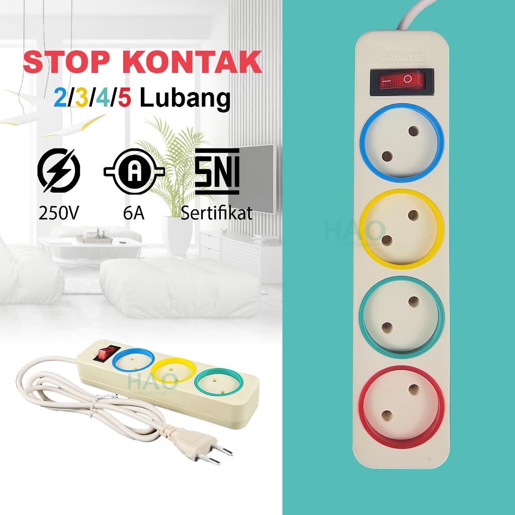 Stop Kontak Gepeng ColorFull ON/OFF / Stop Kontak + Kabel 2/3/4/5 Lubang SNI / Merek Cahaya SC-852/3/4/5