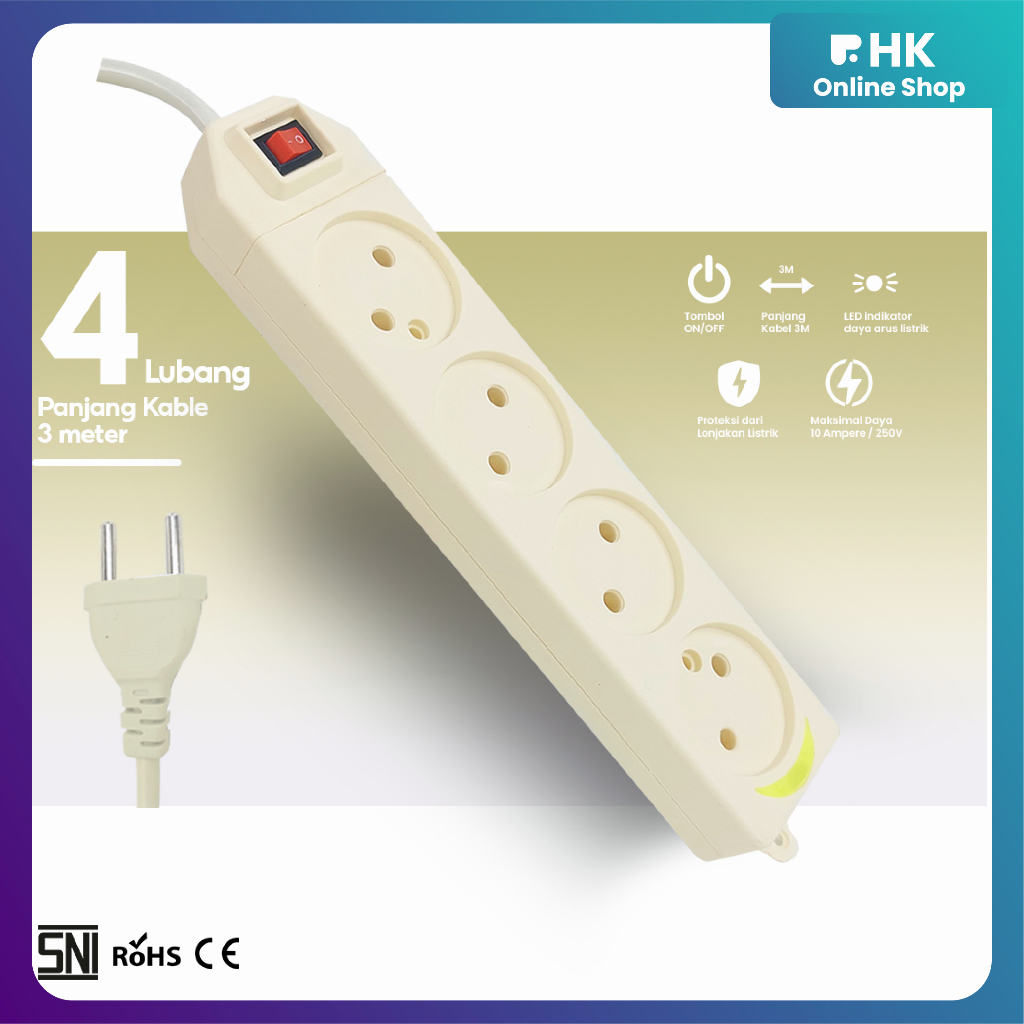 Stop Kontak Kabel 2 3 4 5 Lubang Colokan / Stop Kontak Gepeng + Kabel Putih and Krem