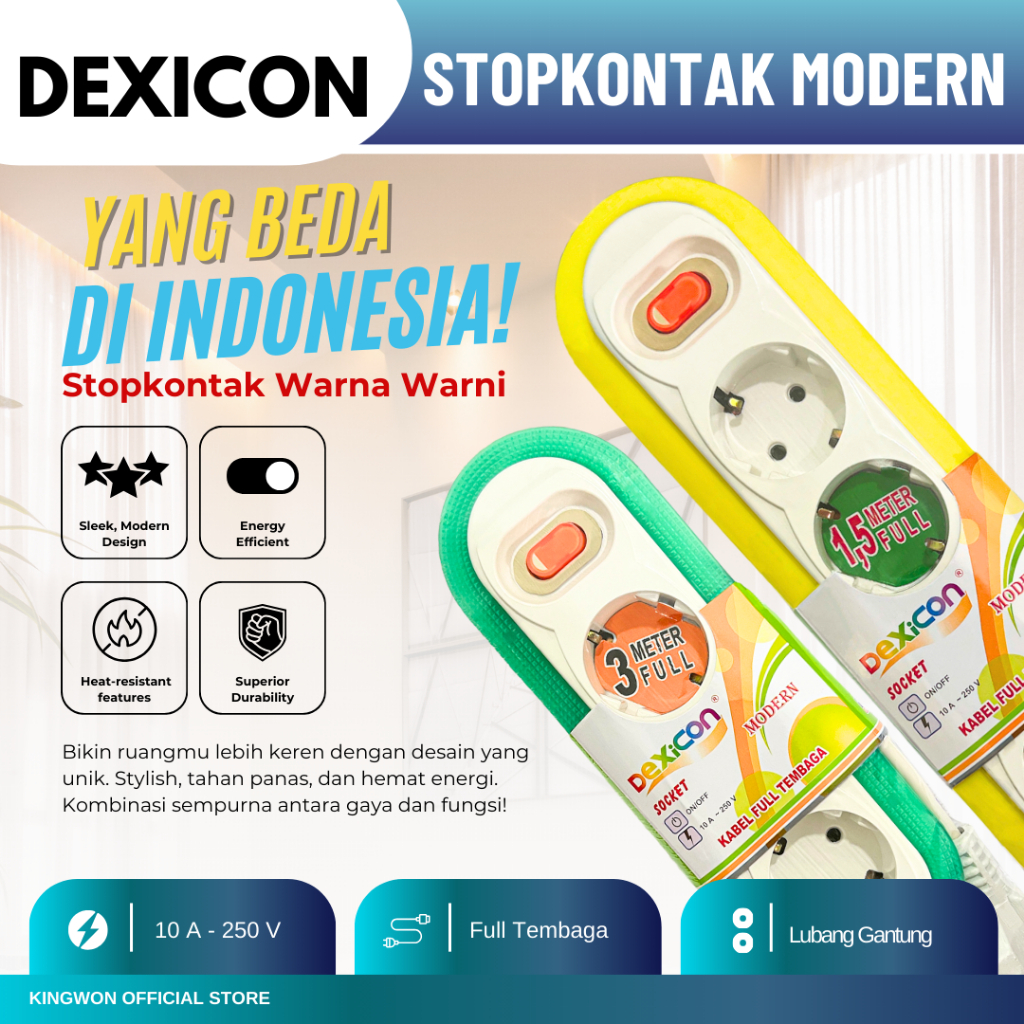STOP KONTAK MODERN + KABEL 2/3/4/5 LUBANG 1,5/3/5/10 METER MURAH DEXICON