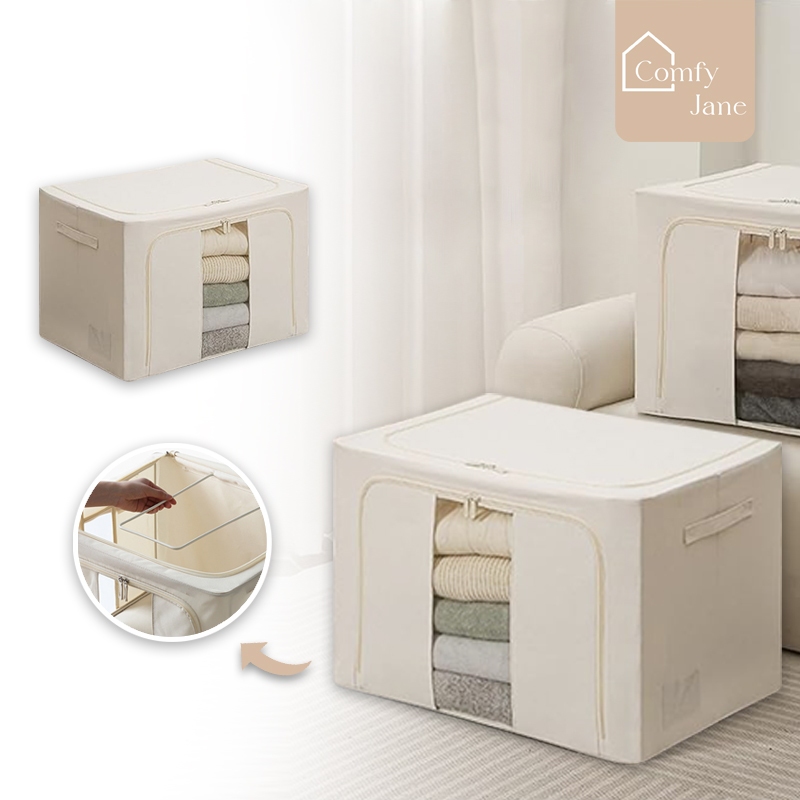 Storage Kotak Penyimpanan Pakaian Selimut Tempat Organizer Lipat Rangka Baja Bingkai Jendela Transparan Anti Debu STO021