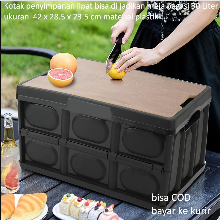 Kotak penyimpanan lipat bisa di jadikan meja bai 30 Liter ukuran 42 x 28.5 x 23.5 cm material plastik