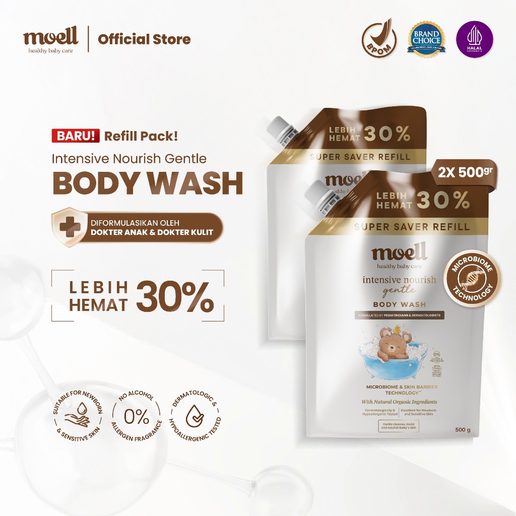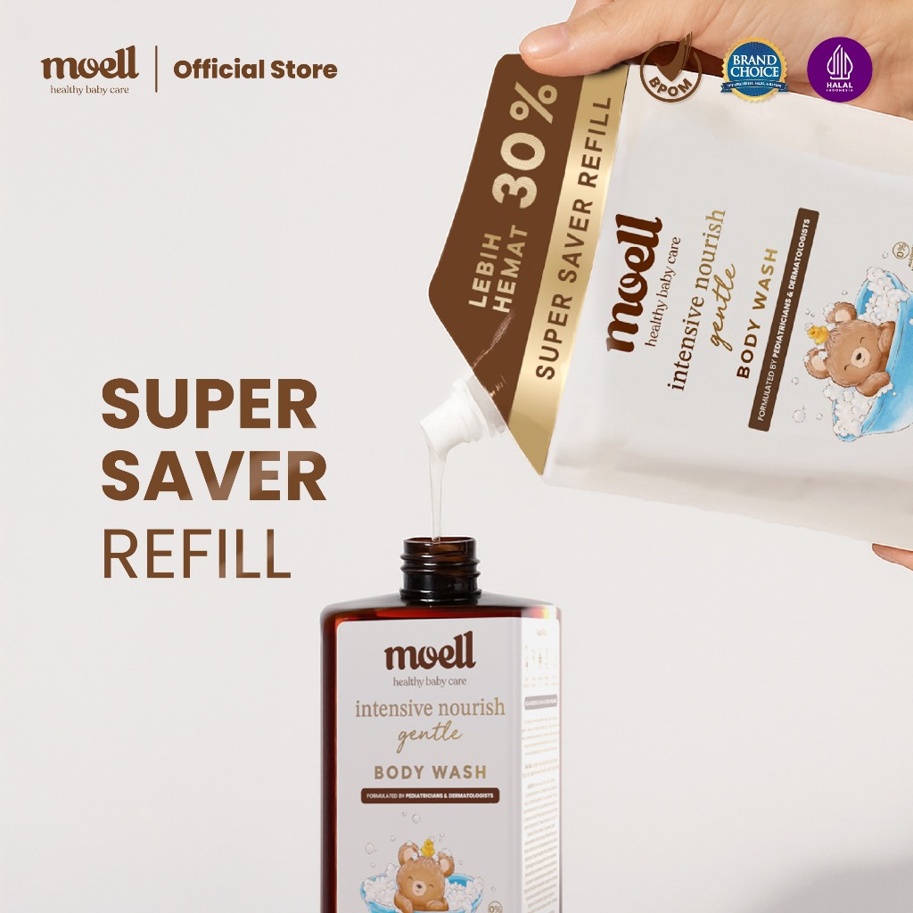 Moell Gentle Sabun Mandi Bayi Anak Kkuning mengkilapan Refill 500gr - Kulit Kering dan Sensitif - Tanpa SLS & - Kulit Sensit