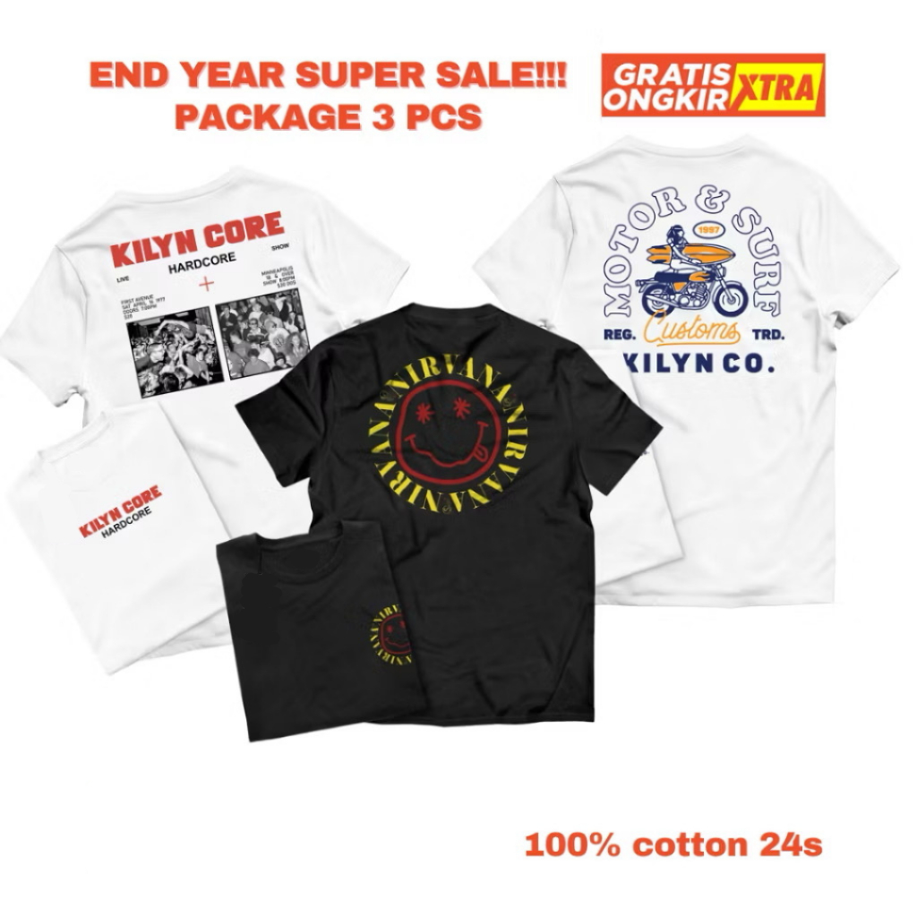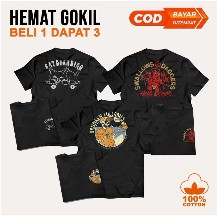 Paket 3 Pcs 100rb Kaos Distro Tshirt Kaos Bahan Katun 3 IN 1 Gambar Print 24s Pakaian Atasan Pria Wanita