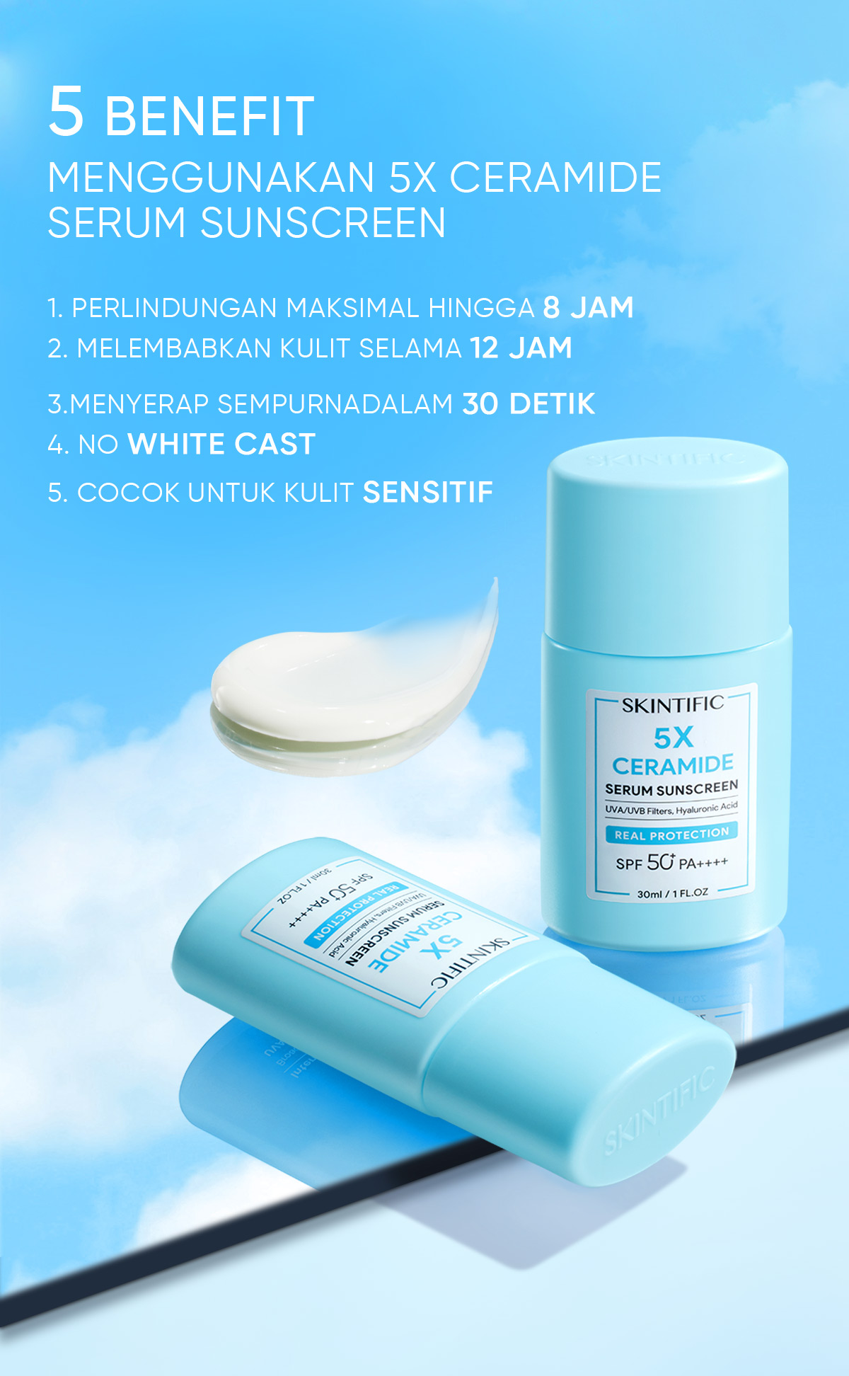 SKINTIFIC OFFICIAL STORE 5X CERAMIDE SERUM SUNSCREEN SPF 50+ PA++ OIL CONTROL MELINDUNGI SKIN BARRIER SKINCARE SKINTIFIC