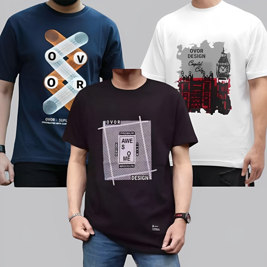 Kaos Distro Pria Paket isi 3 Pcs} Baju Koas Pria Wanita Koas Obolong Lengan Pendek