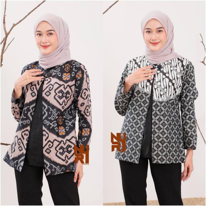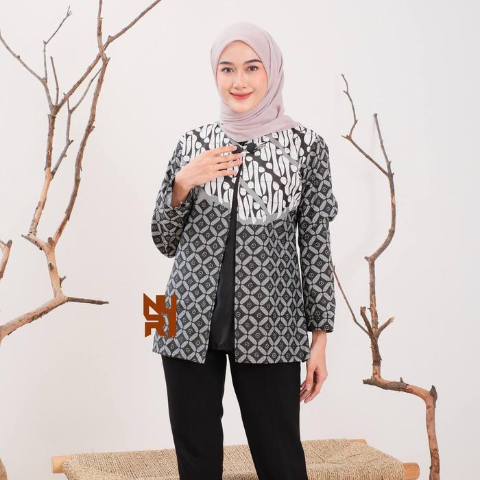 ATASAN BAJU BATIK WANITA KERJA KANTOR MODERN LENGAN PANJANG KANCING KATUN OVERSIZE CASUAL CEWEK - BOLERO FAYOLA, M