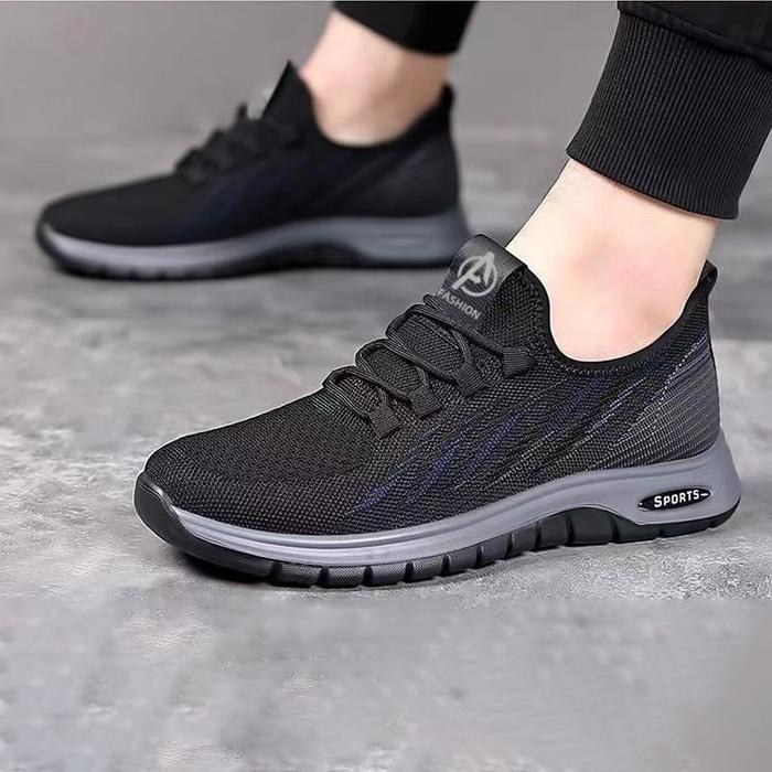 Leedoo Sepatu Sneakers Hitam Pria Olahraga Sepatu Kerja Cowok Shoes Jogging Kekinian Hitam Antiselip MR171