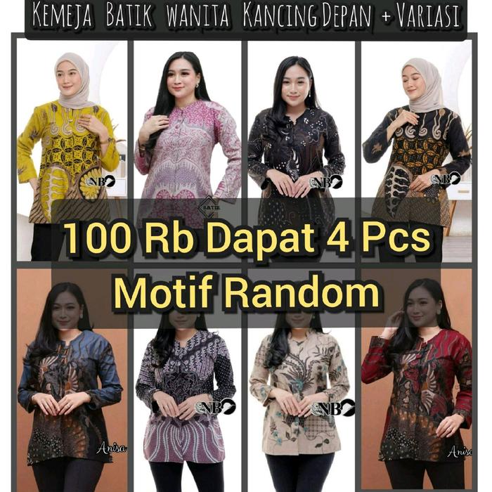 PAKET 100 RB DAPAT 4 PCS BAJU BATIK ATASAN WANITA LENGAN PANJANG SLIM-FITTING - 4PCS BLOUSE RANDOM, M