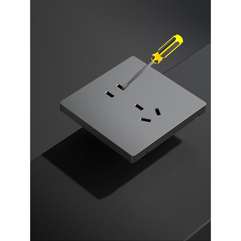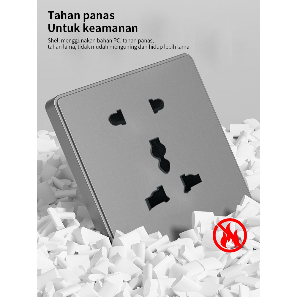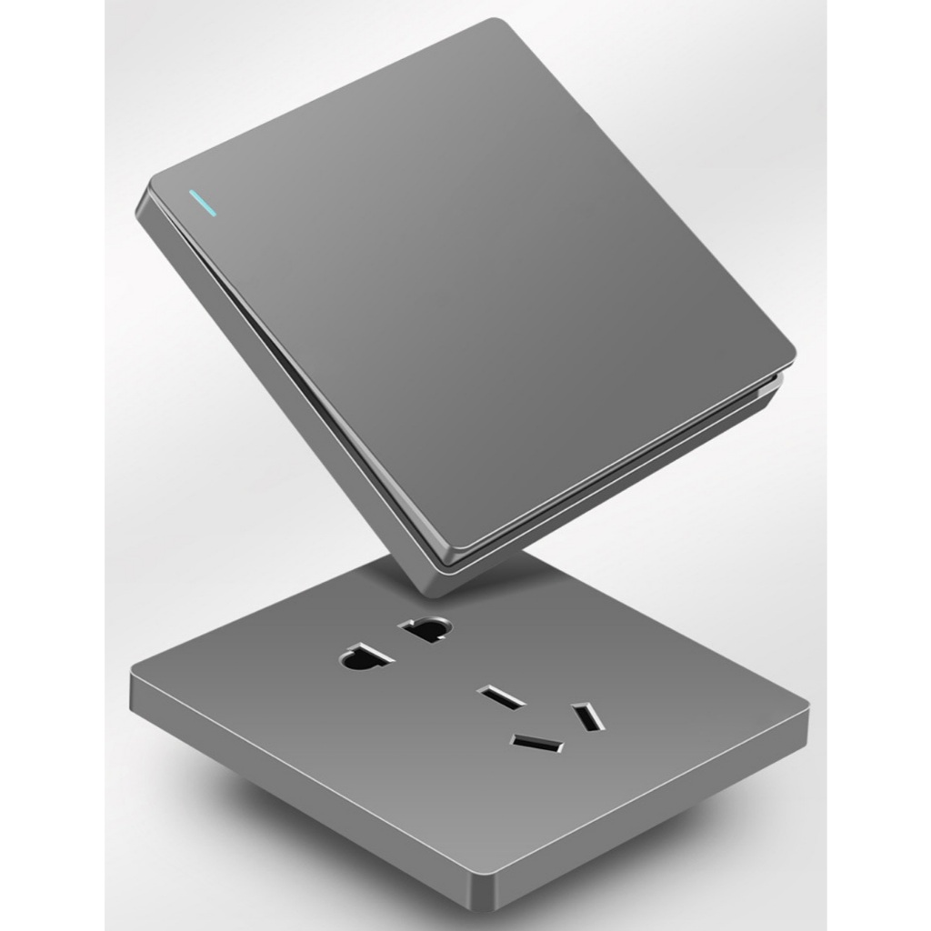 Saklar Slim Abu-abu Tech & Stop Kontak Tanam | Warna Titanium, Desain Futuristik, 2500W Multifungsi()
