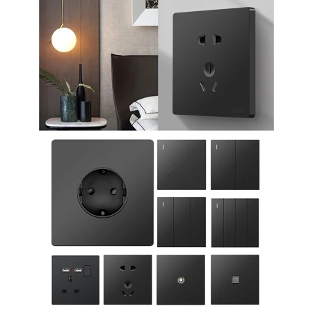 Saklar Stop Kontak Mewah HITAM Gang Estetik Tahan/Steker Serbaguna /Oversteker Serbaguna