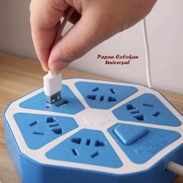 Stop Kontak USB Hexagon Socket 4 lubang dan 2 port USB Hexagonal