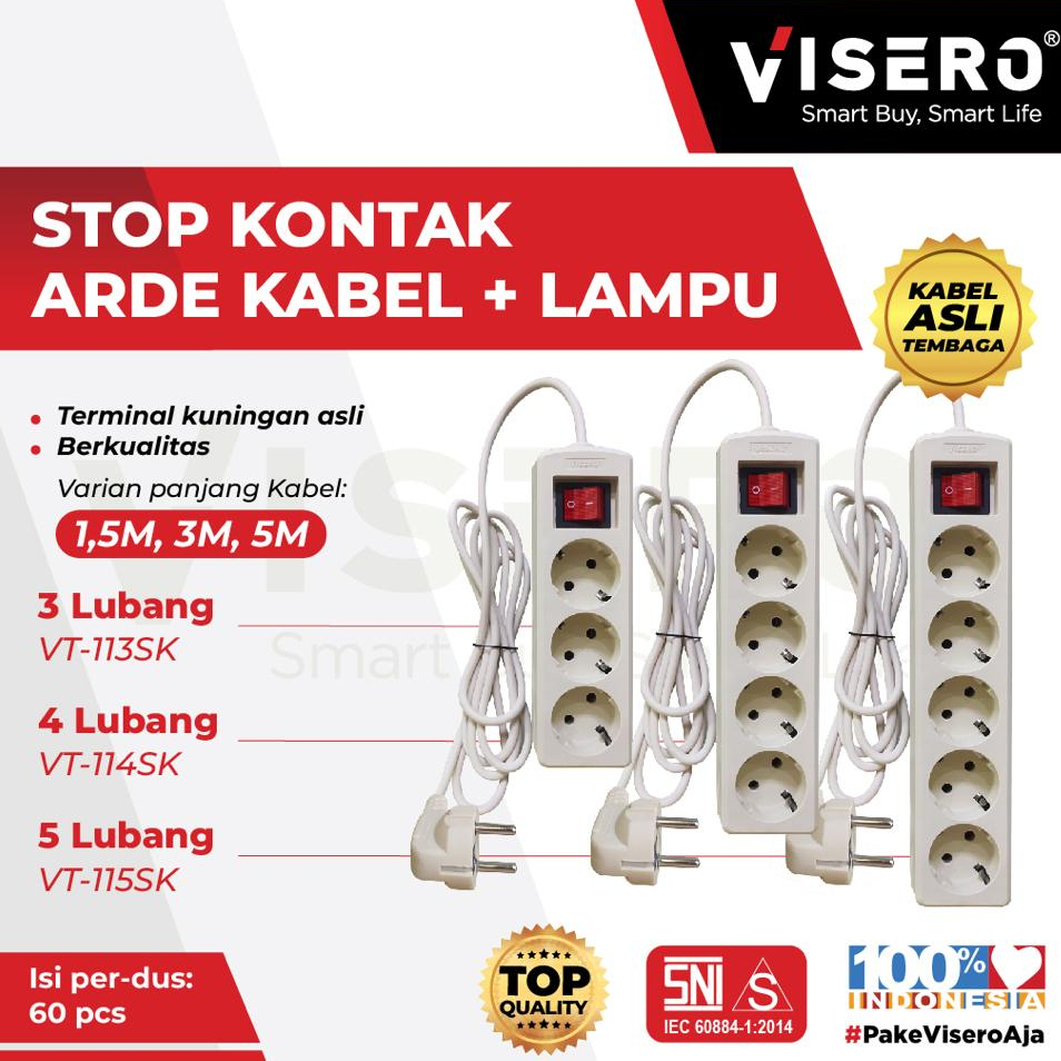 Visero/Sunfree/Sunsafe Stop Kontak Kabel 3 4 5 Lubang 1,5 3 5 Meter SNI Super Murah