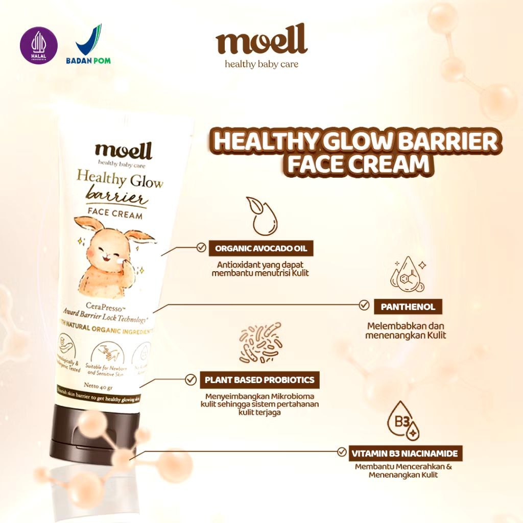 Moell Skin Protection - Face Cream 40gr & Physical Sunscreen 30gr & Body Lotion 185gr & Hair Lotion 100ml - Skincare Bab