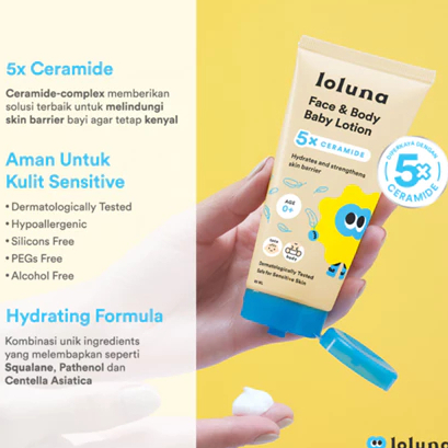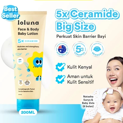 LOLUNA FACE & BODY BABY LOTION 80ML/200ML | LOTION KRIM MUKA DAN BADAN BAYI, NEWBORN DAN ANAK