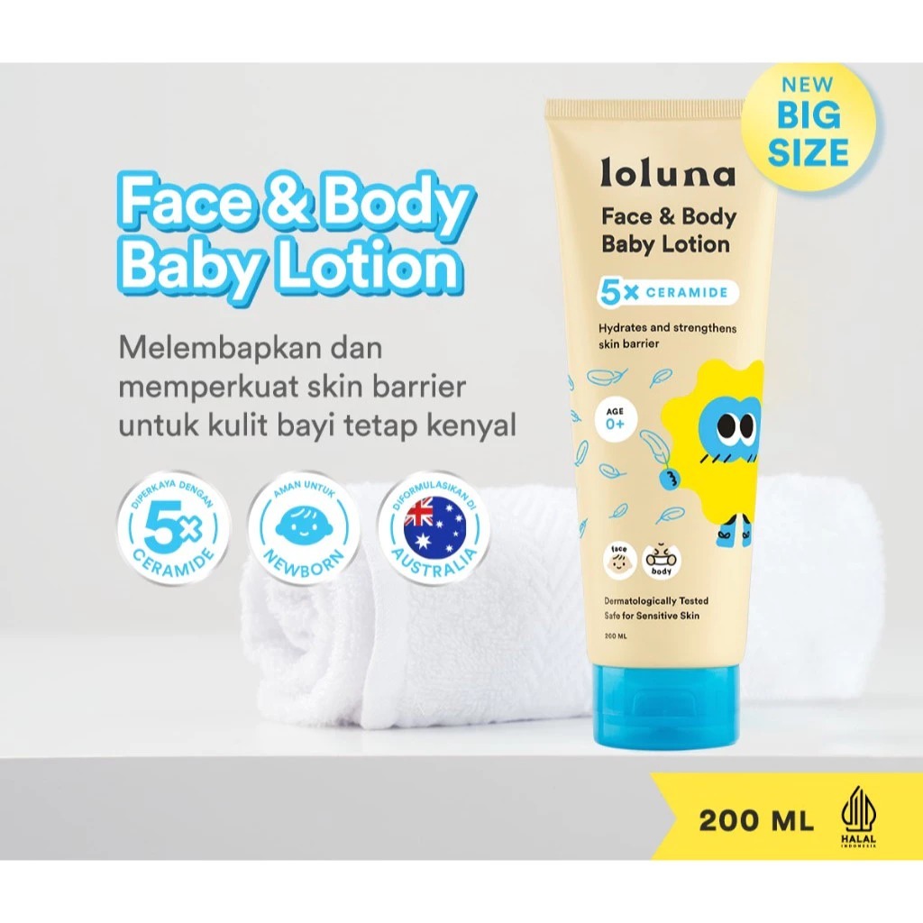 Loluna Face & Body Baby Lotion 5x Ceramide 80ml & 200ml - Krim Wajah Bayi & Body Lotion