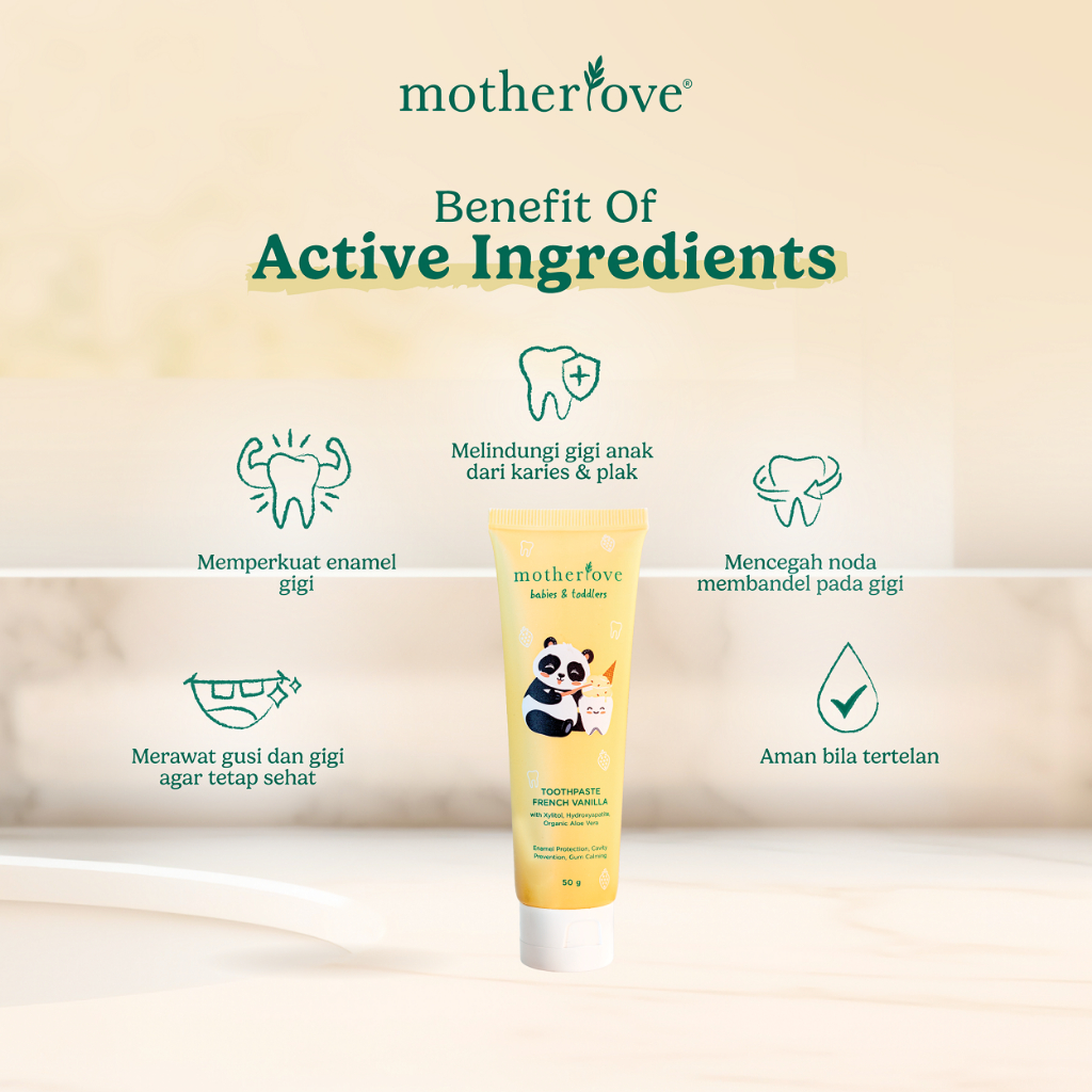 Motherlove Babies & Toddlers Toothpaste French Vanilla 50g - Pasta Gigi/Odol Bayi dan Anak Aman Tertelan - Pasta Gigi Ba